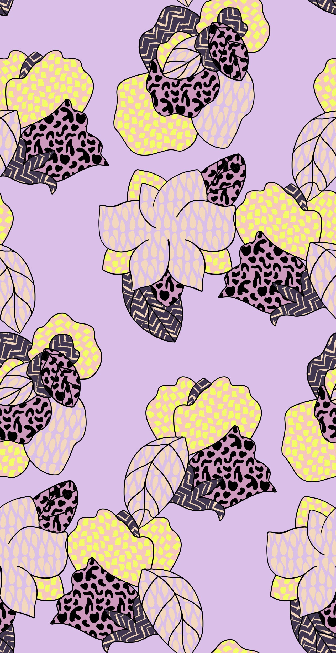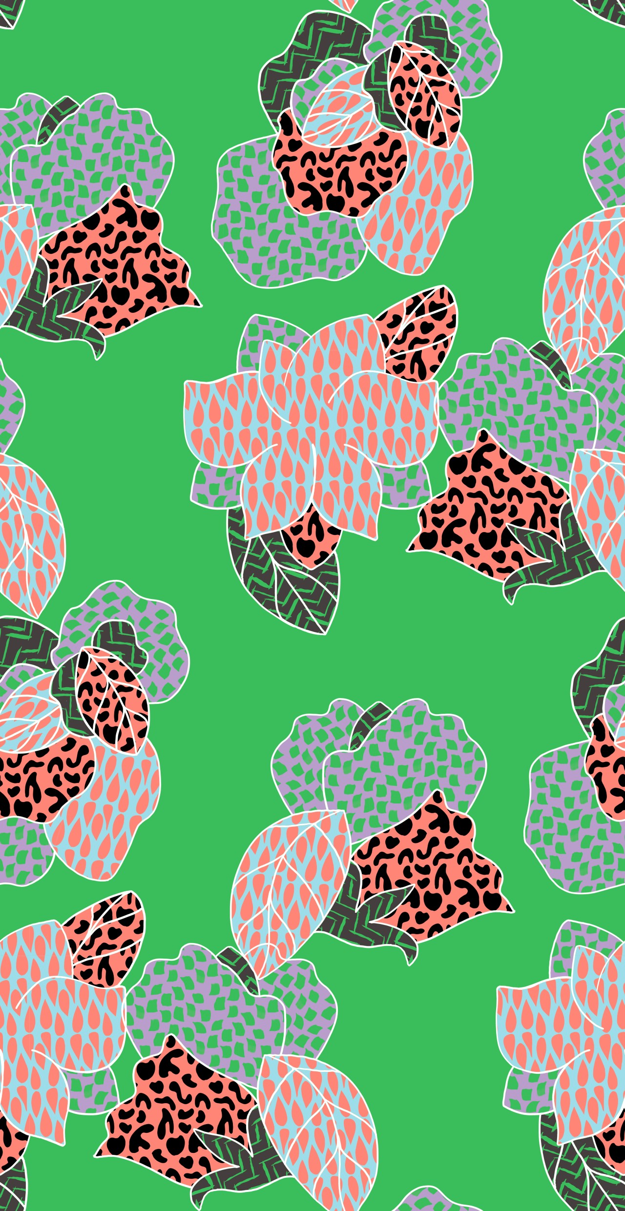 BACKPATT, c'est le motif à l'intérieur du motif. Des fleurs avec des patterns dedans. Et elles sont tellement grandes, qu'elles sont peu lisibles et un peu mystérieuses.