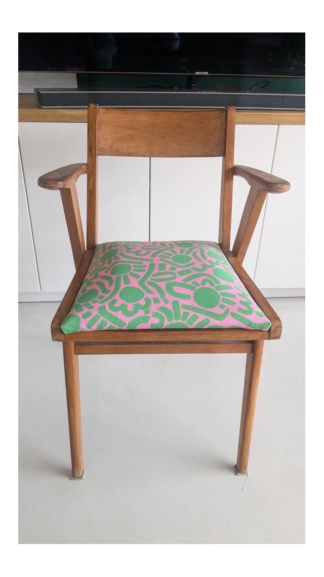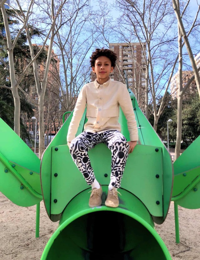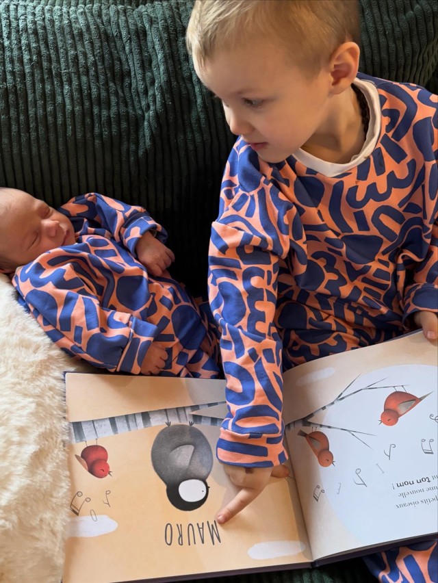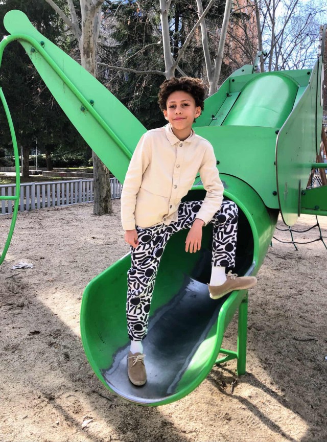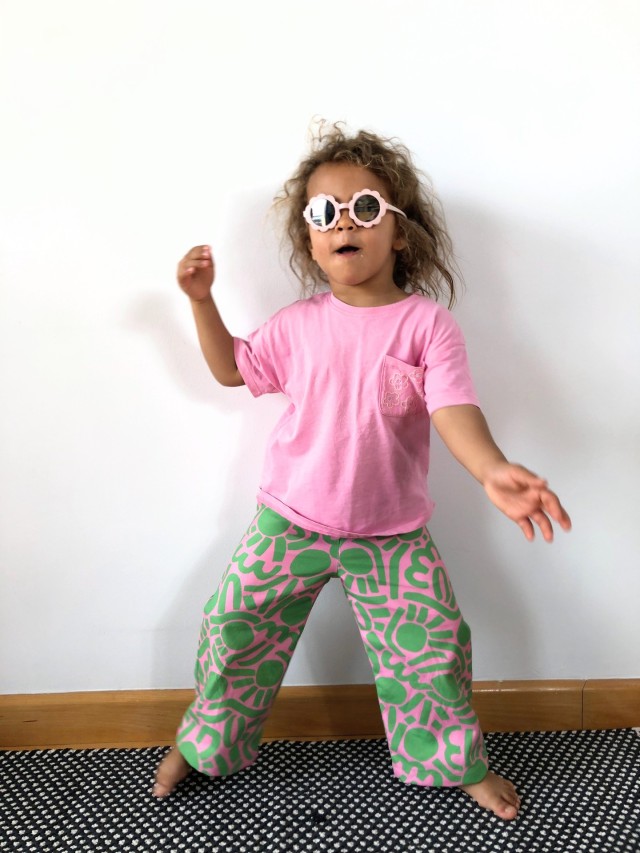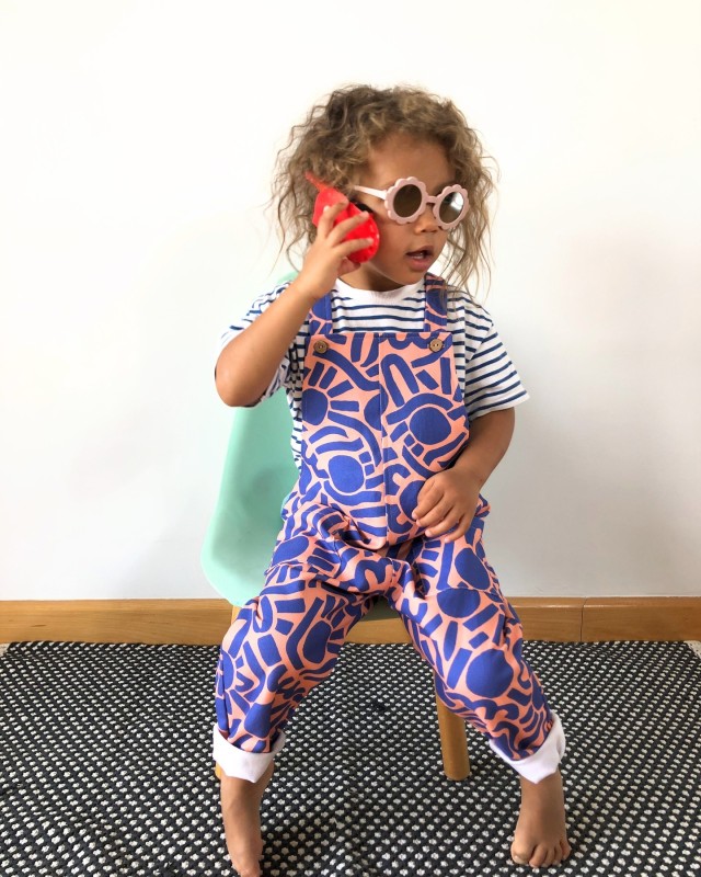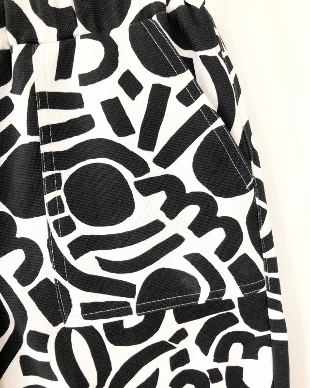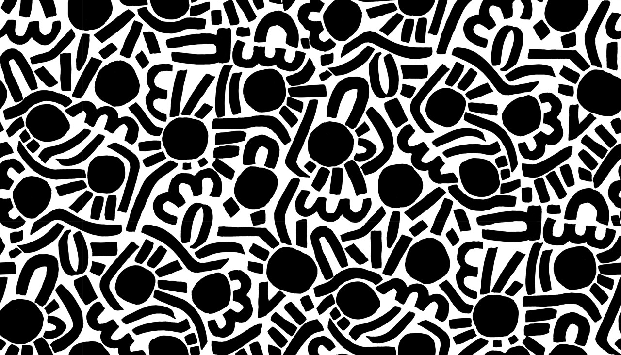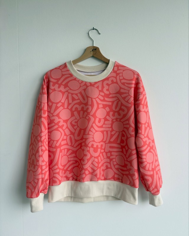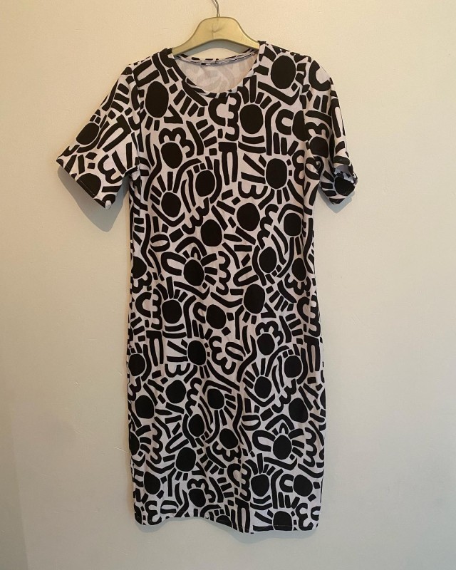 Dotty Keith est né d’une admiration sans filtre pour l’énergie de Keith Haring — ces silhouettes en mouvement, cette vibration brute du trait. Je l’ai d’abord dessiné en noir et blanc, comme un clin d’œil graphique, presque instinctif. Puis la couleur s’en est mêlée, et ce motif a pris une toute autre dimension : plus pop, plus audacieux, irrésistiblement joyeux.