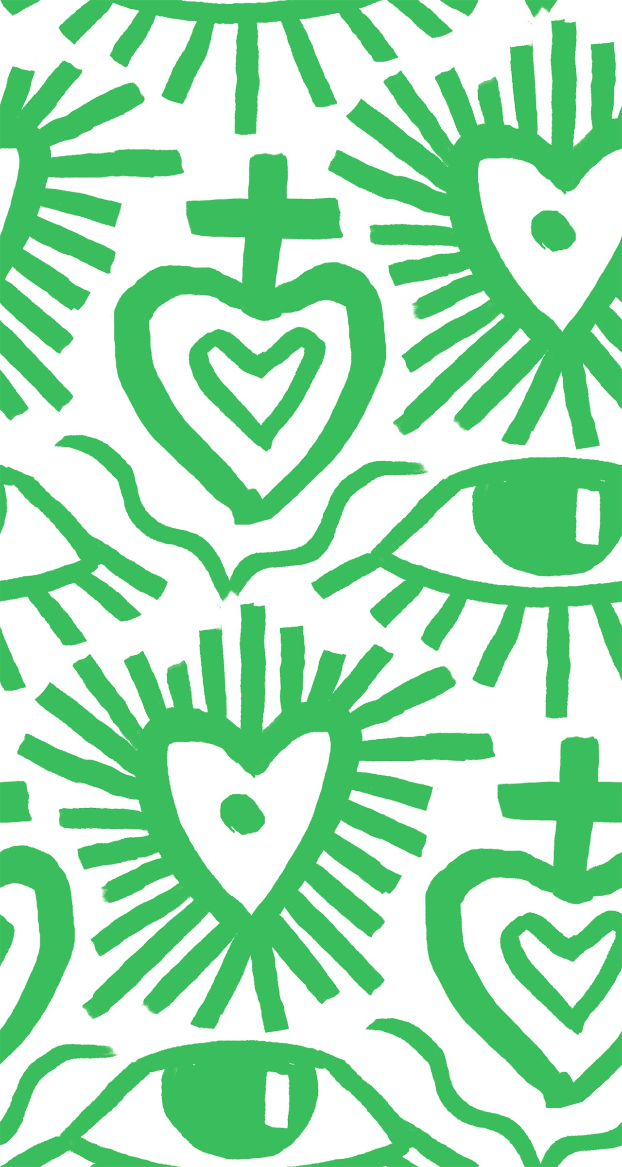 Exvoto puise dans ces symboles qui parlent à tout le monde — un cœur, un œil, une croix — ces figures universelles qu’on retrouve sur les murs des églises mexicaines comme dans les carnets de croquis. Je les ai tracés avec un trait bold d’illustrateur, franc et assumé, pour leur donner une énergie contemporaine tout en gardant cet air de talisman ancien.