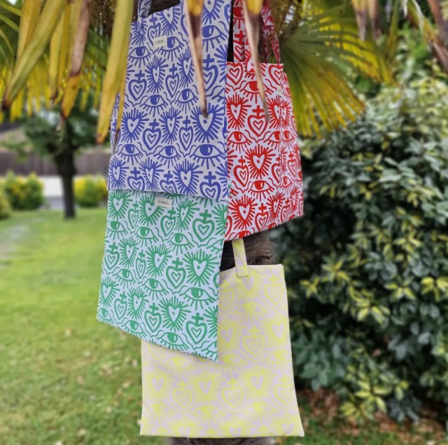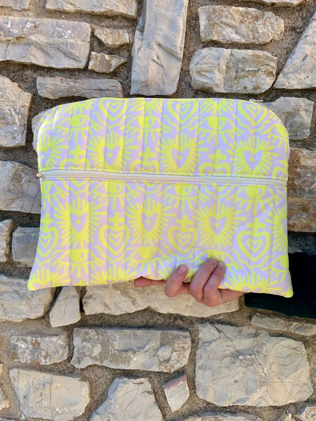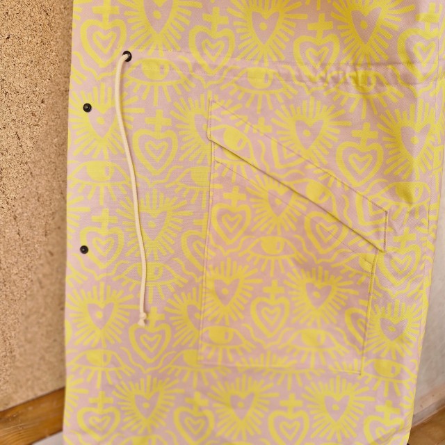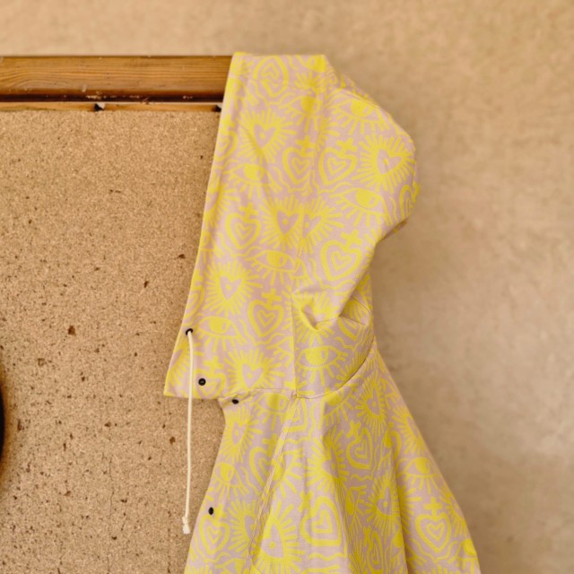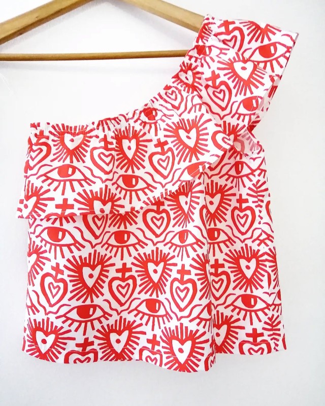 Il y a quelque chose de presque mystique dans Exvoto — comme un porte-bonheur imprimé. Sa répétition simple et efficace le rend facile à apprivoiser, mais son trait généreux et ses symboles forts lui donnent une présence immédiate. C’est le motif qu’on choisit quand on veut porter quelque chose qui a une âme, pas juste un imprimé.