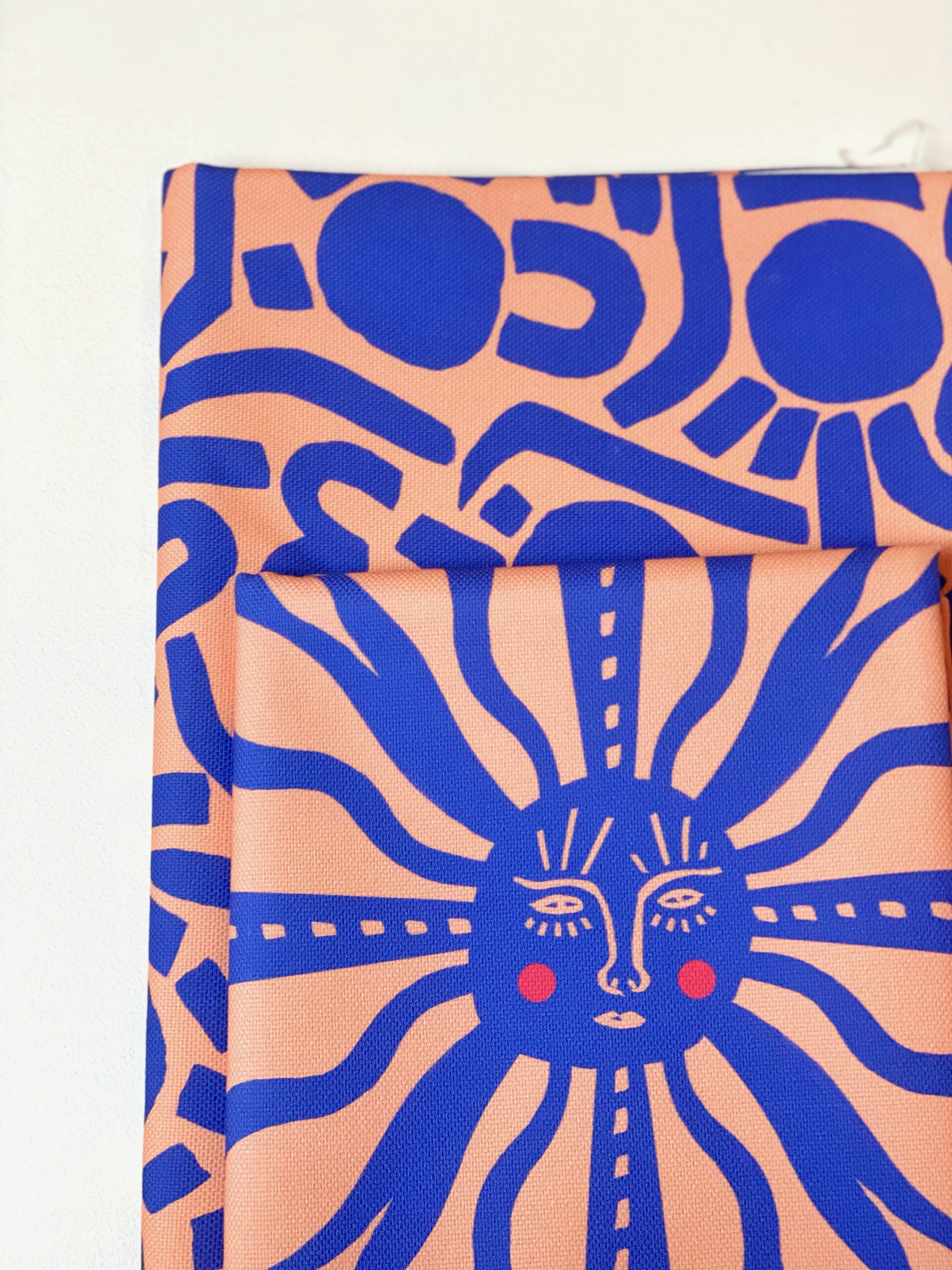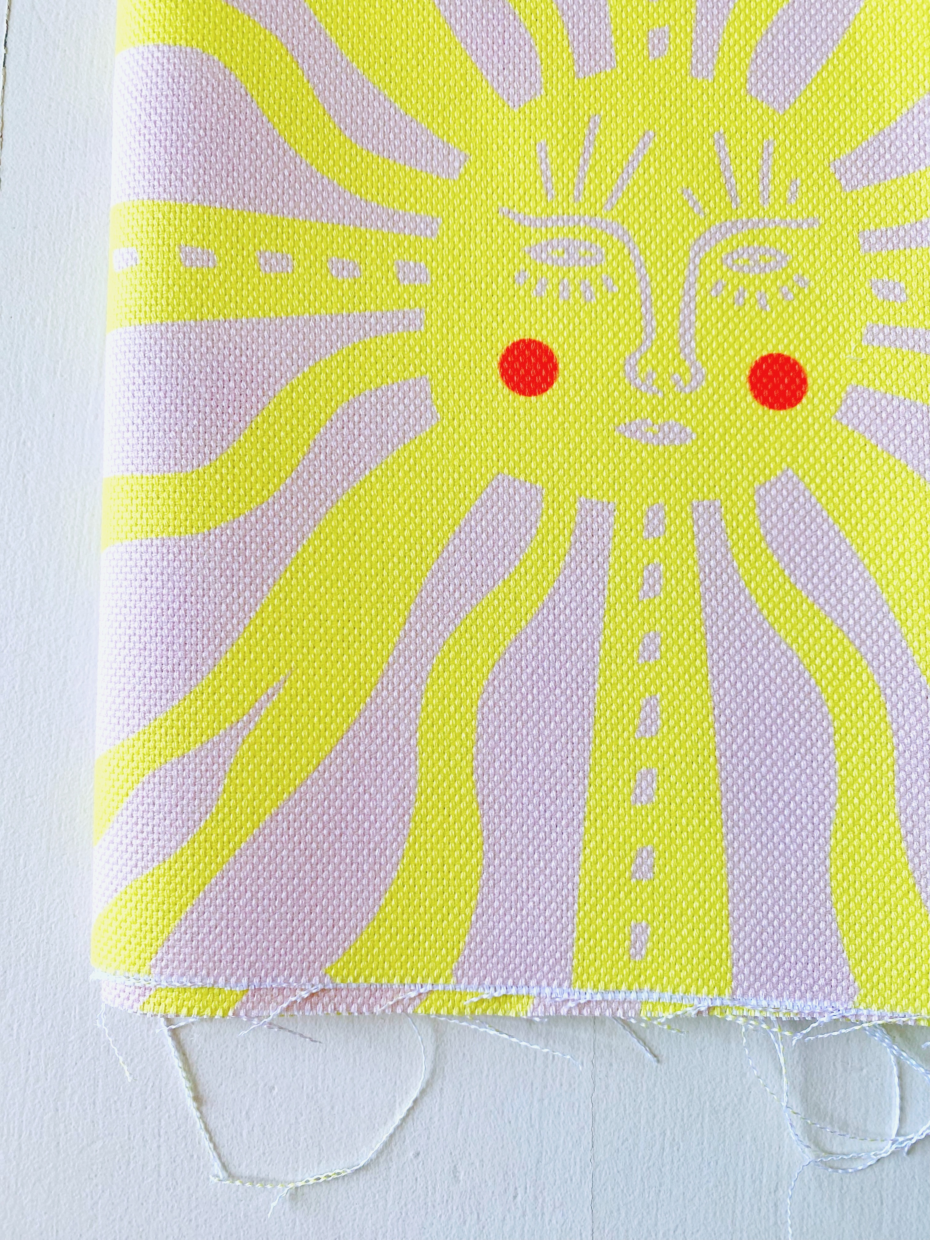 Le Soleil a cette force des motifs qui portent un sens — il ne décore pas seulement, il raconte et il protège. Sa construction symétrique lui donne une présence presque sacrée, tandis que ses couleurs vives et ses joues roses apportent une touche de tendresse inattendue. Un motif à porter comme un talisman ou à afficher chez soi comme un porte-bonheur.