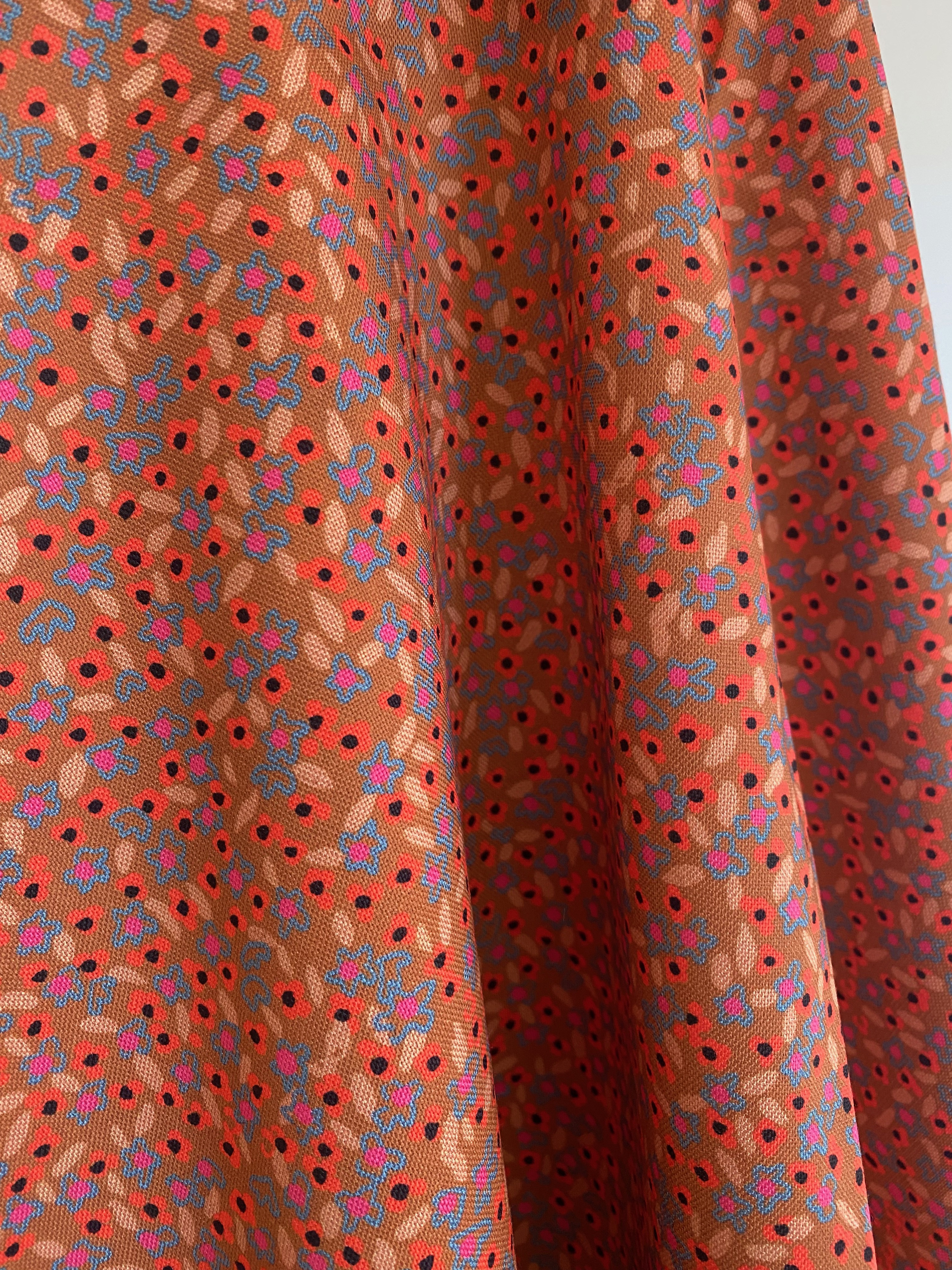Micro-jardin stylisé où fleurettes et feuillages créent un faux-uni sophistiqué. L'élégance du Liberty avec l'audace des couleurs modernes.