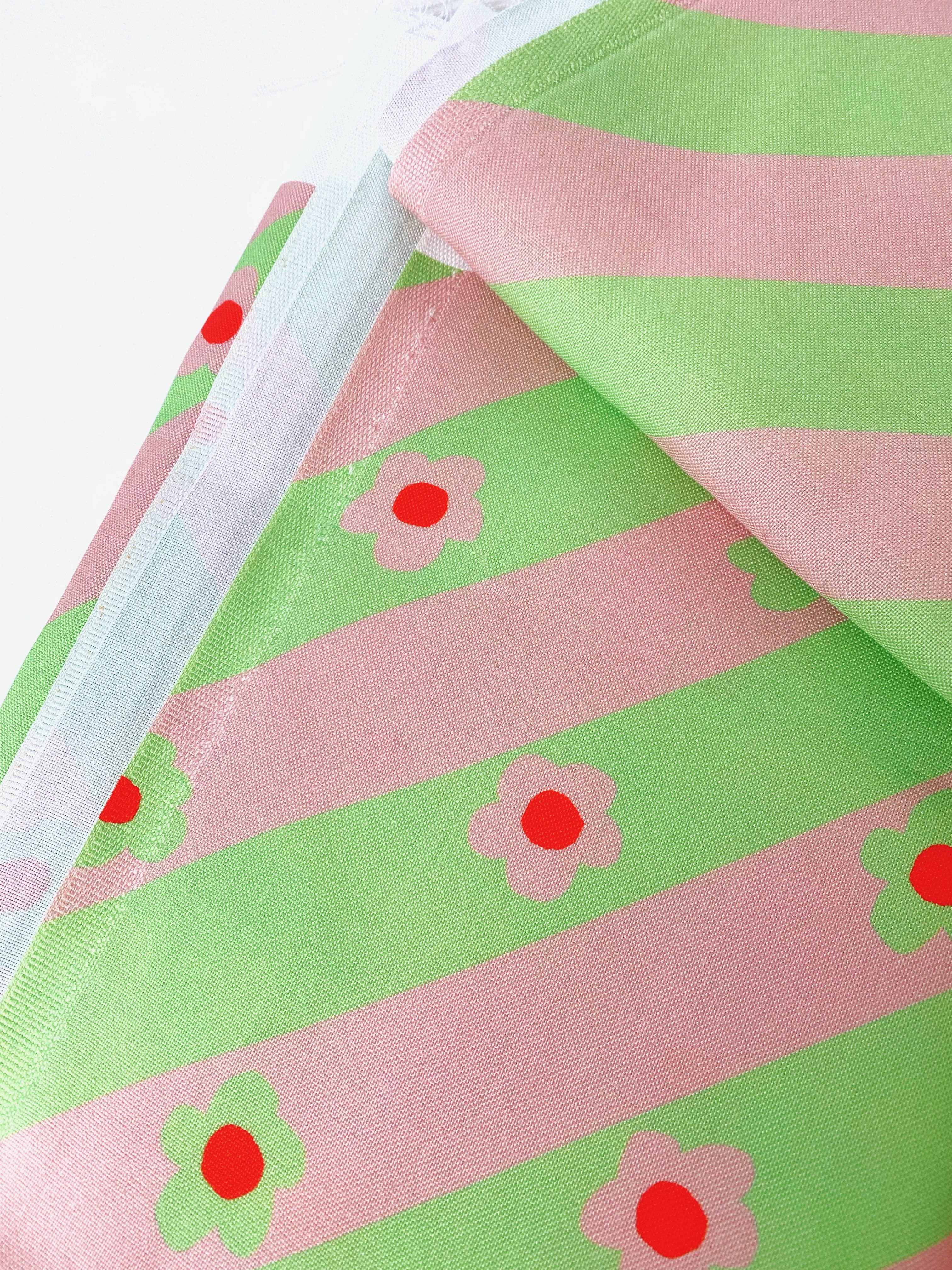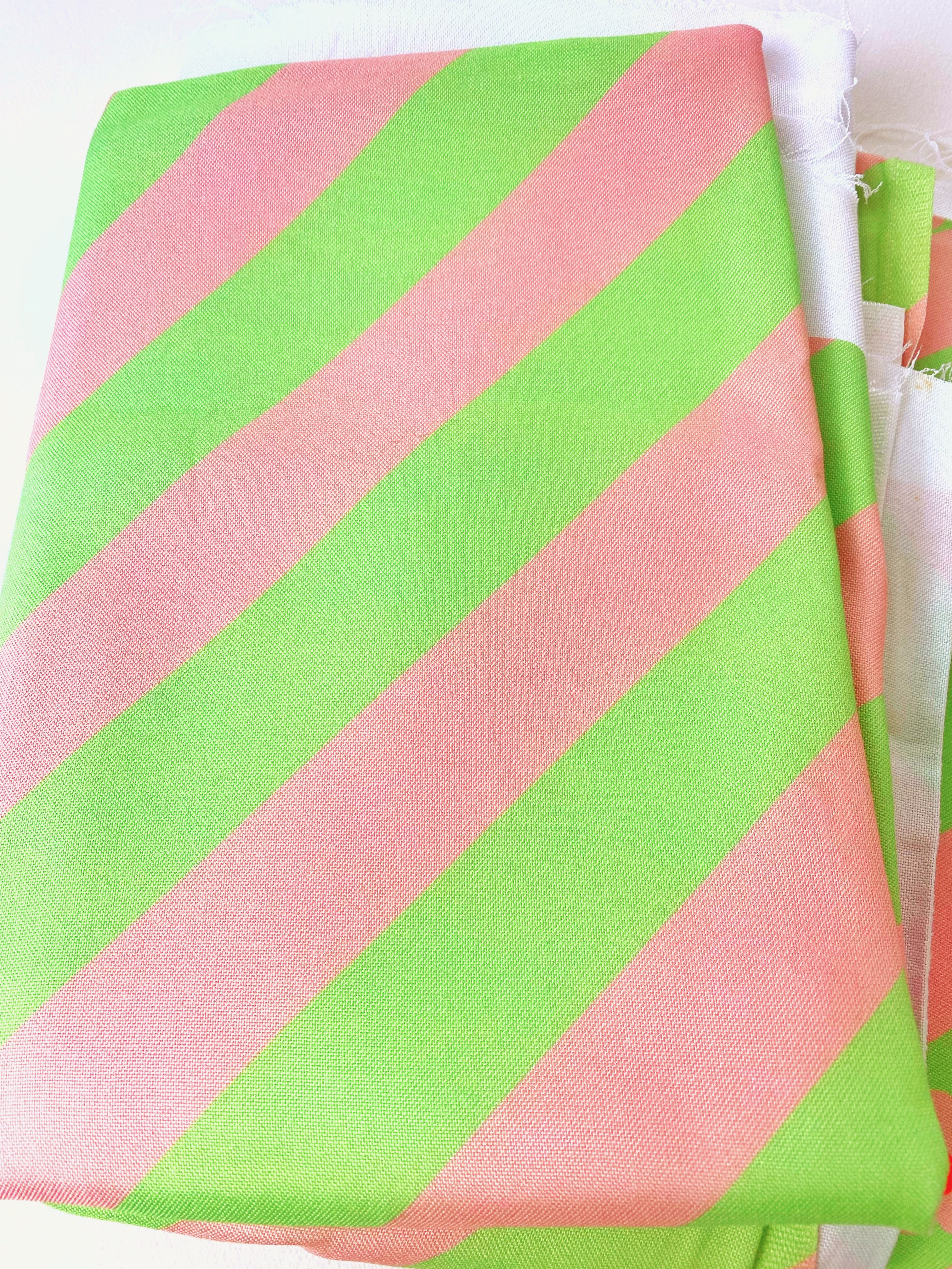 Notre VIBES célèbre l'élégance minimaliste avec ses rayures diagonales alternant vert menthe et rose poudré, créant un rythme visuel apaisant et moderne dans sa parfaite simplicité.